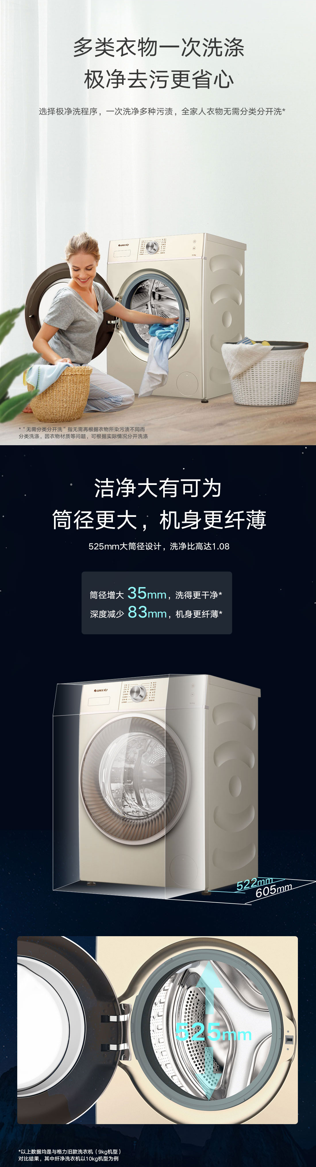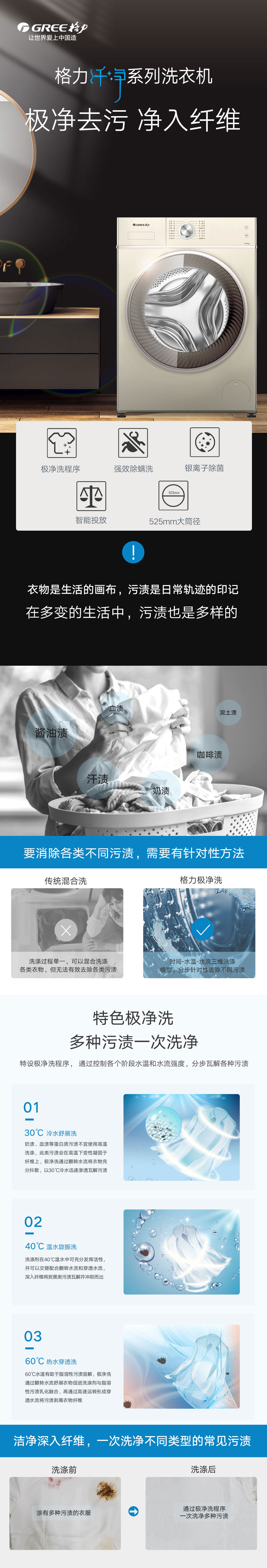 極凈去污,一次洗凈多類污漬,全家人衣物無(wú)需分類分開(kāi)洗。