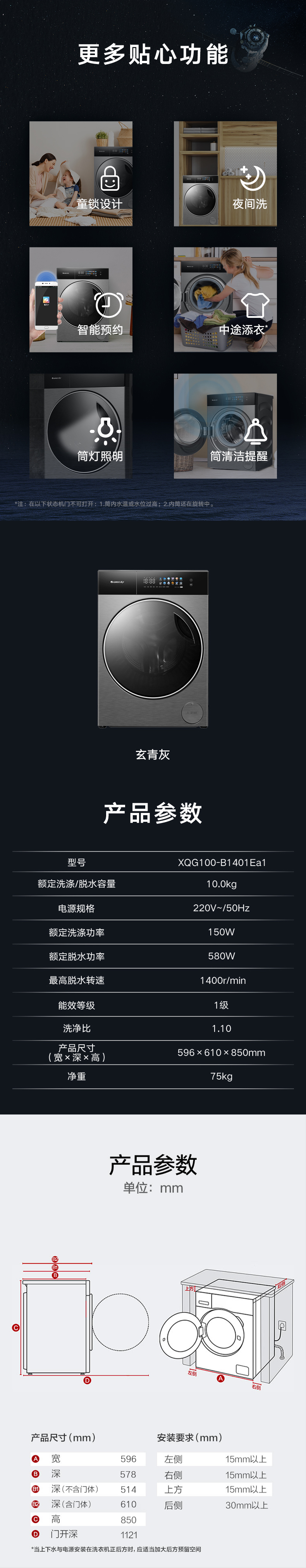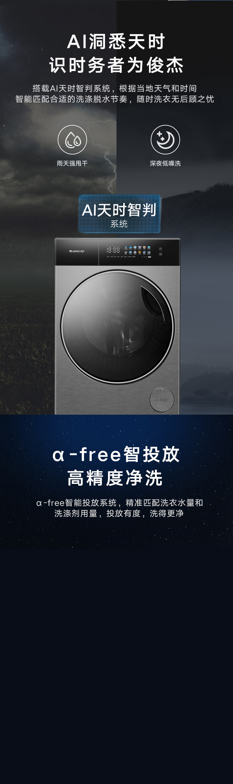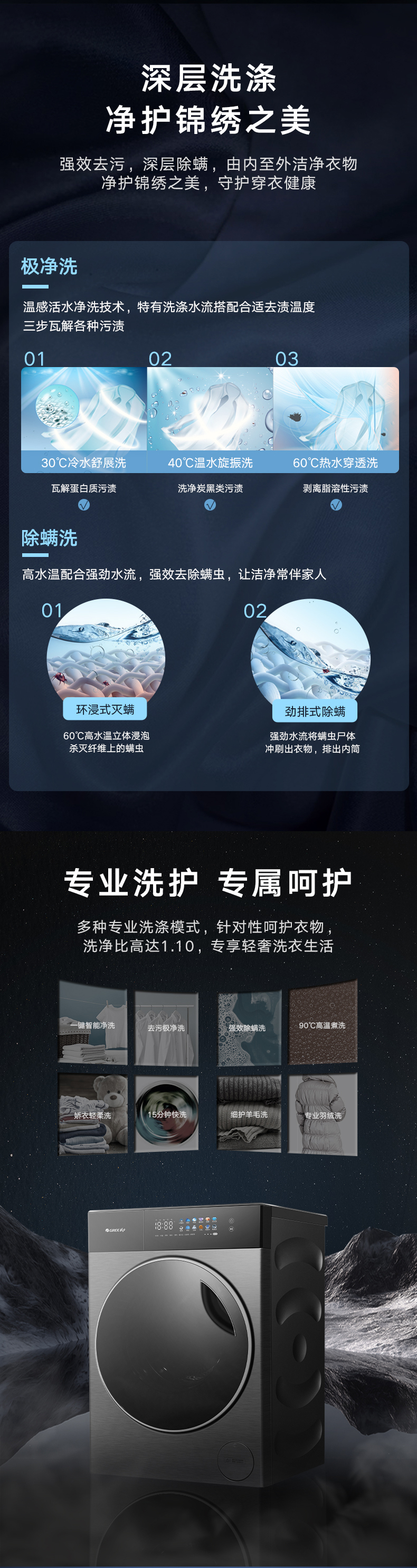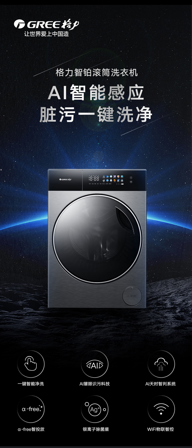 AI智能感應(yīng),臟污一鍵洗凈。AI慧眼識污,智能判斷洗滌凈度,洗凈比高達1.1