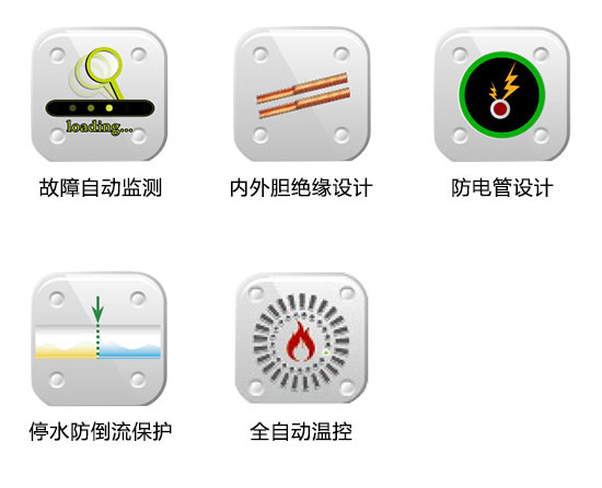 配有漏電開關(guān)保護、防電管設(shè)計、意外漏電保護、停水防倒流保護、超壓保護等多項保護功能,讓您使用安全無憂。 |